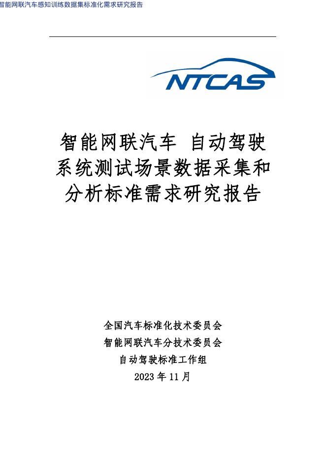 全国汽车标准化技术委员会:2023年自动驾驶系统测试场景数据采集和分析标准需求研究报告.pdf