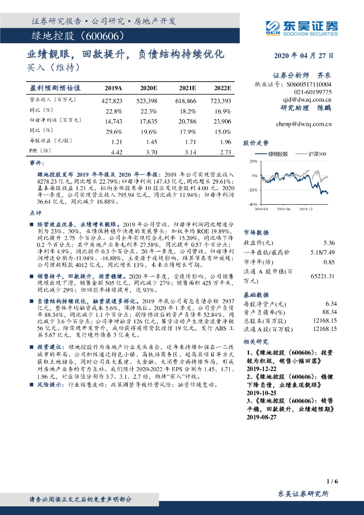 东吴证券:绿地控股(600606)-业绩靓眼,回款提升,负债结构持续优化.pdf