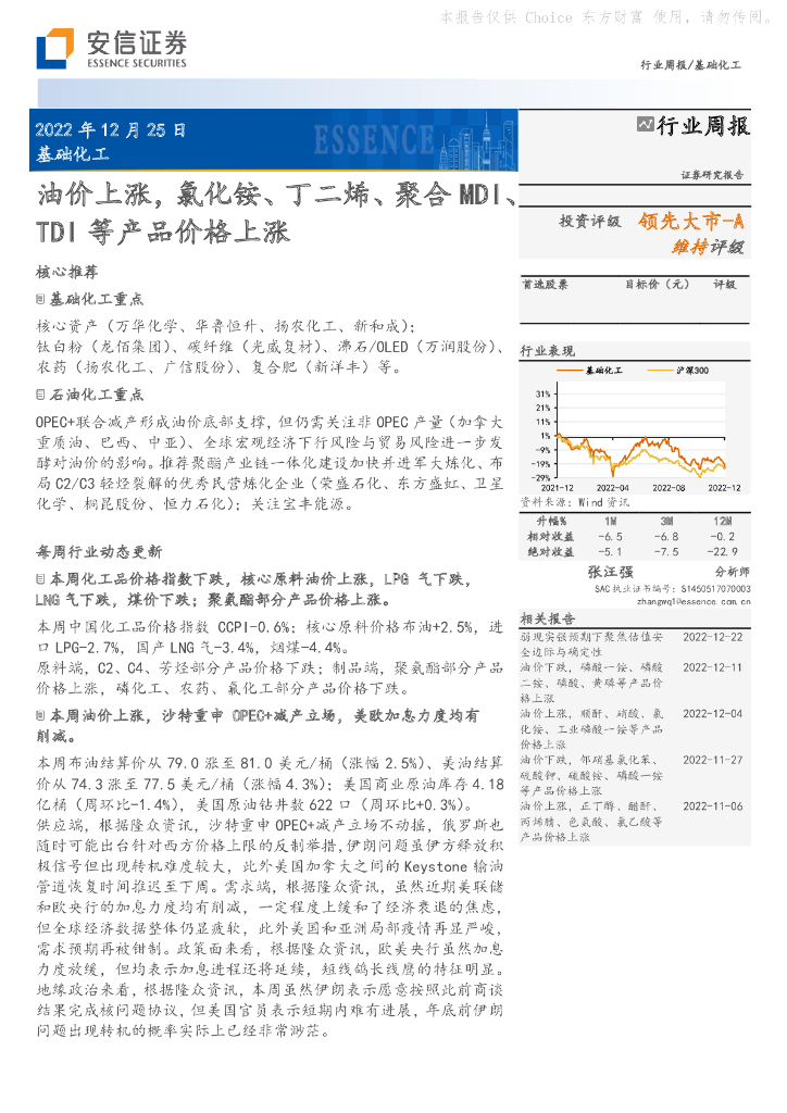 安信证券:基础化工行业周报:油价上涨,氯化铵、丁二烯、聚合MDI、TDI等产品价格上涨.pdf