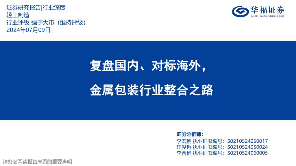 华福证券:轻工制造行业深度:复盘国内、对标海外,金属包装行业整合之路.pdf
