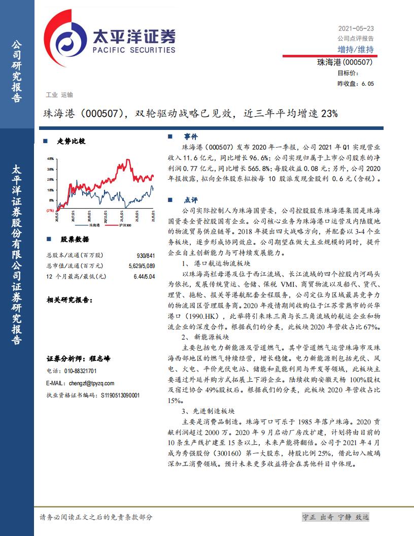 太平洋证券:珠海港(000507)-双轮驱动战略已见效,近三年平均增速23%.pdf