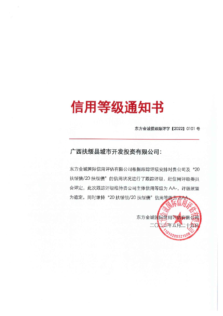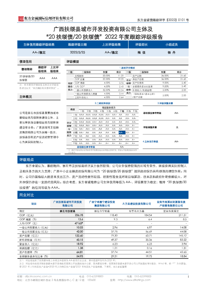 东方金诚:广西扶绥县城市开发投资有限公司主体及“20扶绥债20扶绥债”2022年度跟踪评级报告.pdf