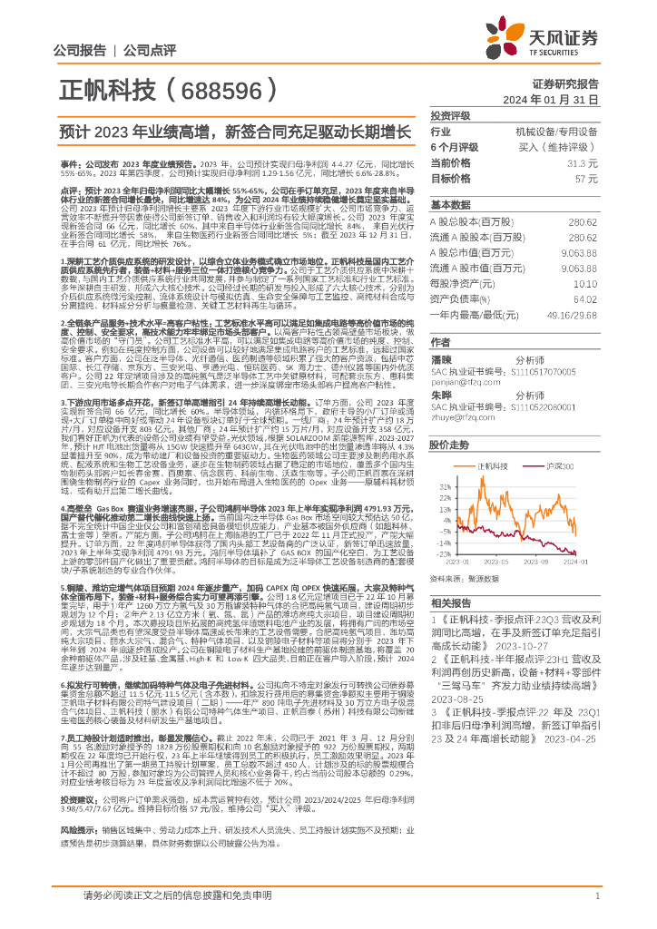 天风证券:正帆科技(688596)-预计2023年业绩高增,新签合同充足驱动长期增长.pdf