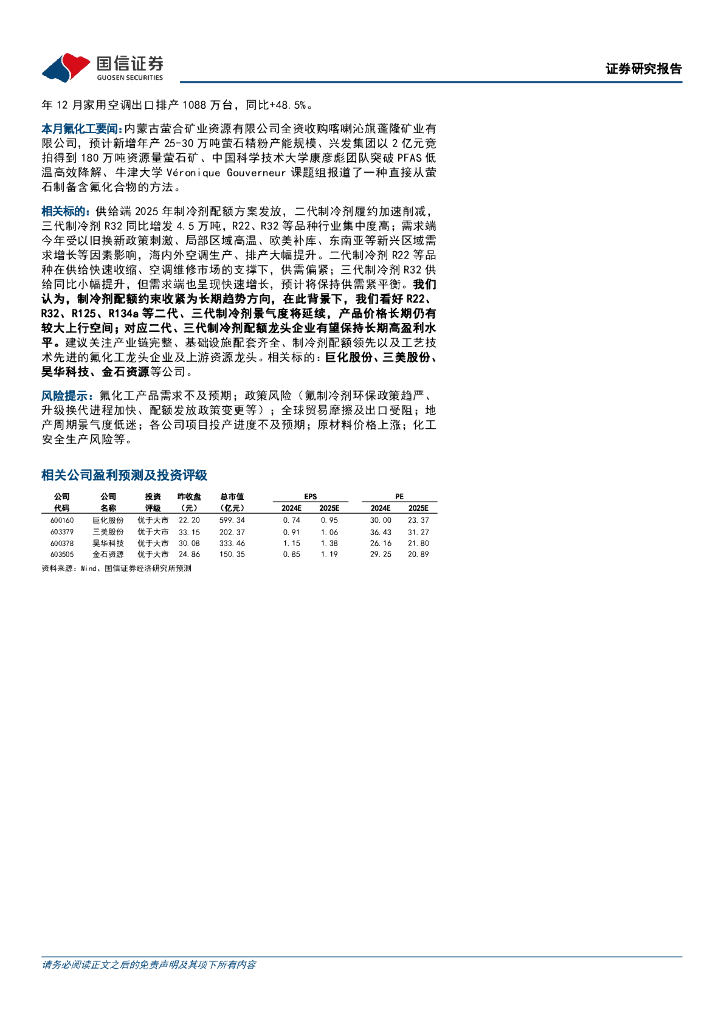 国信证券:氟化工行业:2024年11月月度观察:年末空调排产双位数增长,R125、R134a价格进一步上涨.pdf