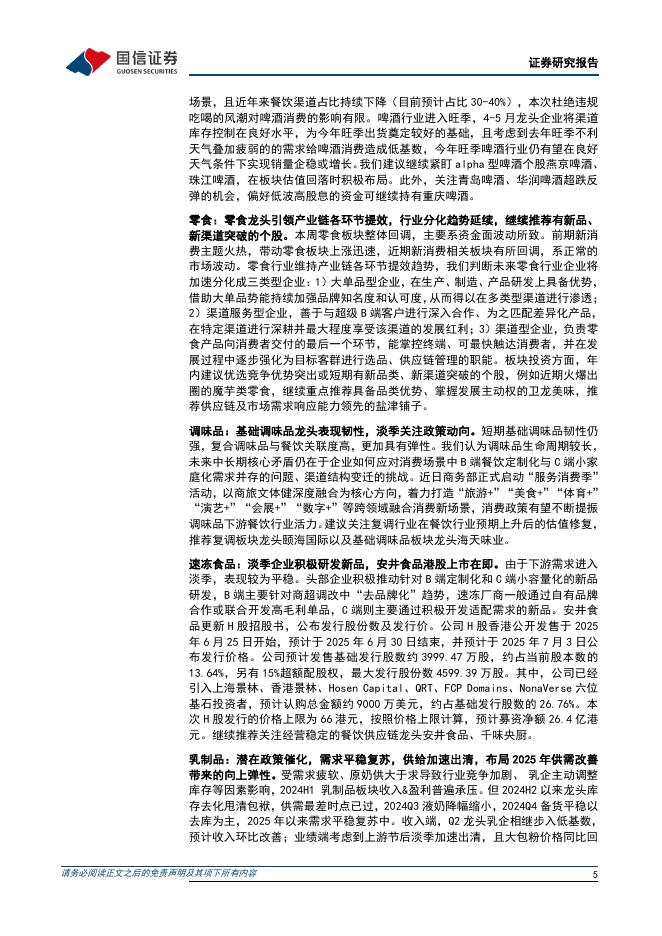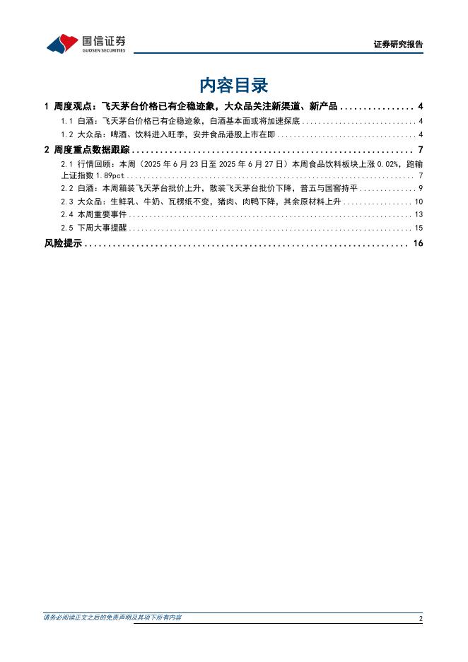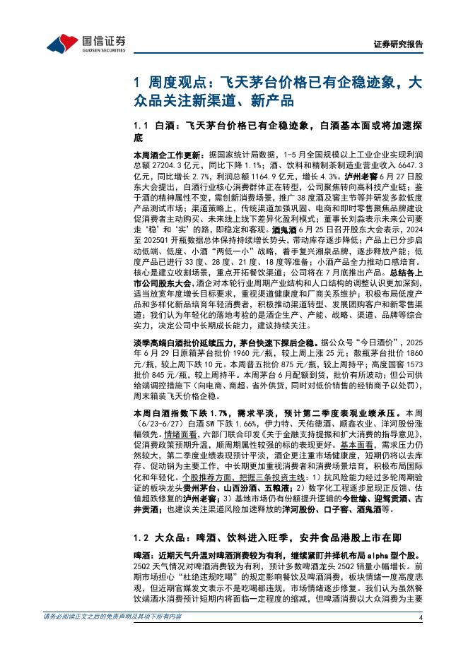 国信证券:食品饮料行业周报(25年第26周):飞天茅台价格已有企稳迹象,大众品关注新渠道、新产品.pdf