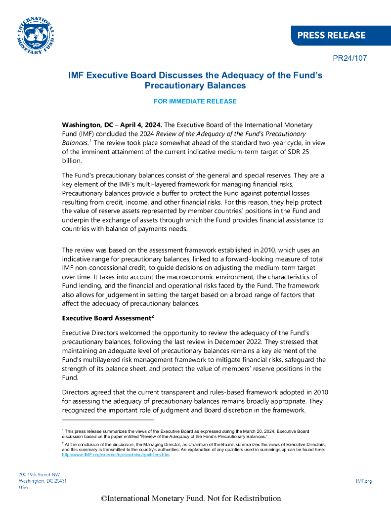 国际货币基金组织:2024审查基金预防性余额的充足性报告(英文版).pdf
