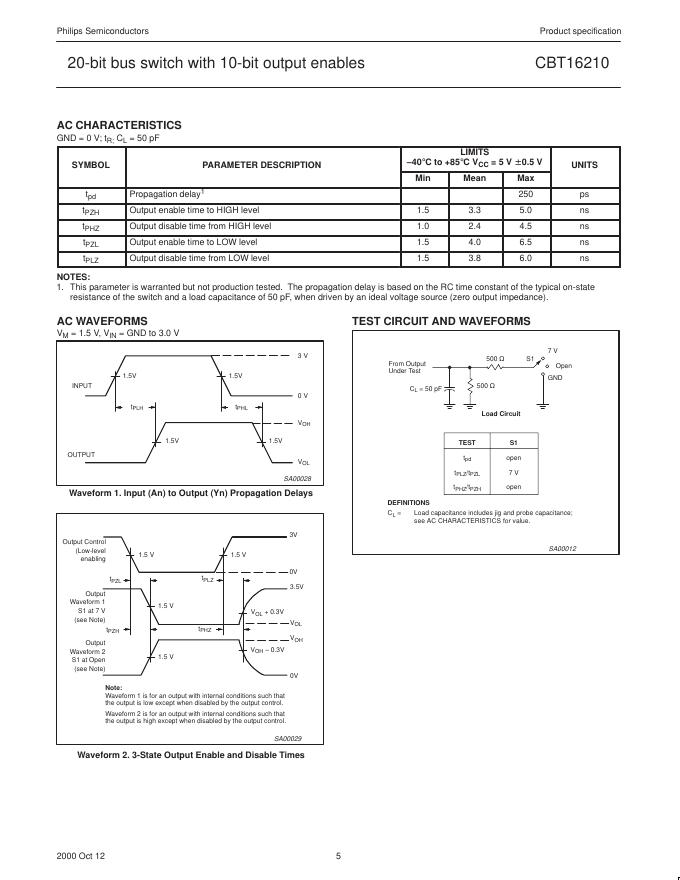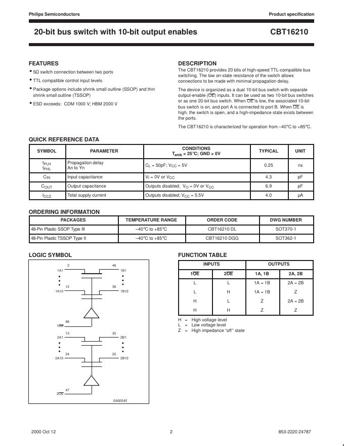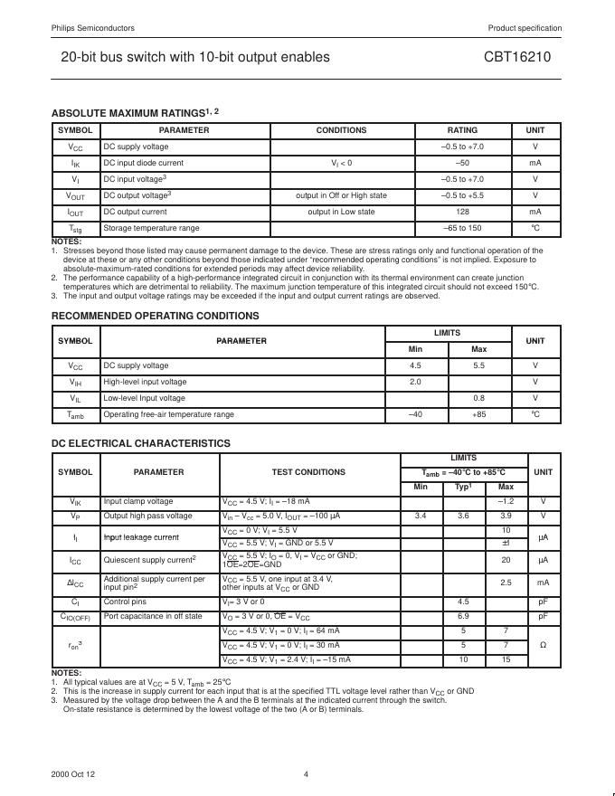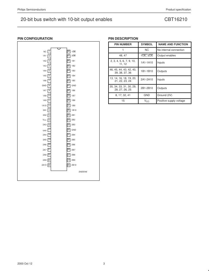 PHILIPS CBT16210 20-bit bus switch with 10-bit output enables 数据手册.pdf