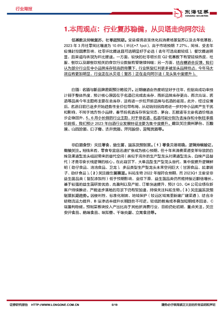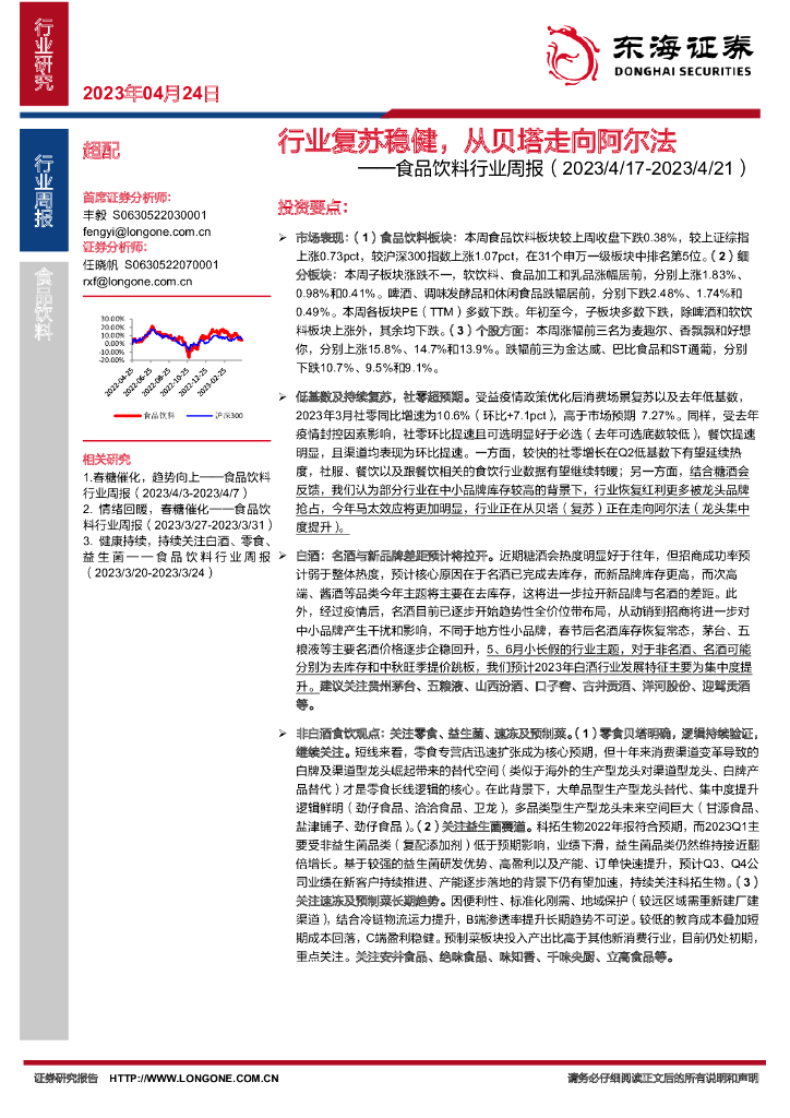 东海证券:食品饮料行业周报:行业复苏稳健,从贝塔走向阿尔法.pdf