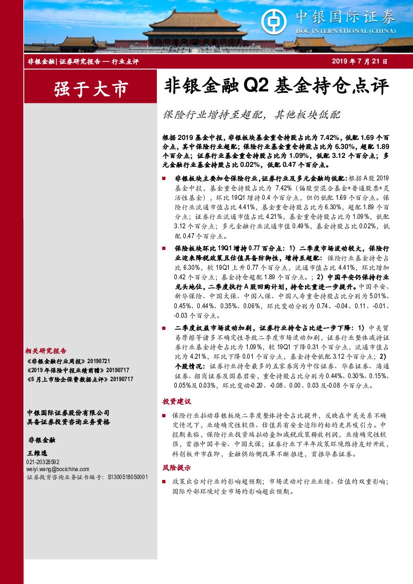 中银国际:非银金融Q2基金持仓点评:保险行业增持至超配,其他板块低配.pdf