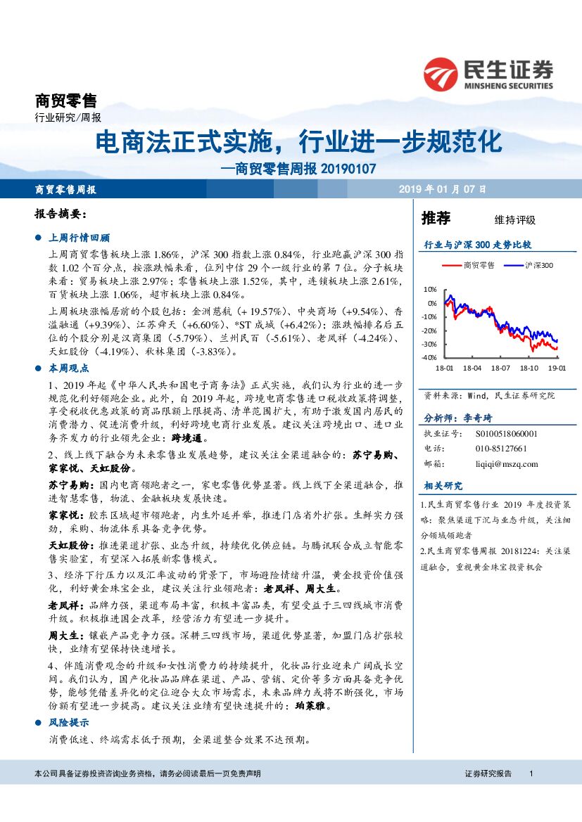 民生证券:商贸零售周报:电商法正式实施,行业进一步规范化.pdf
