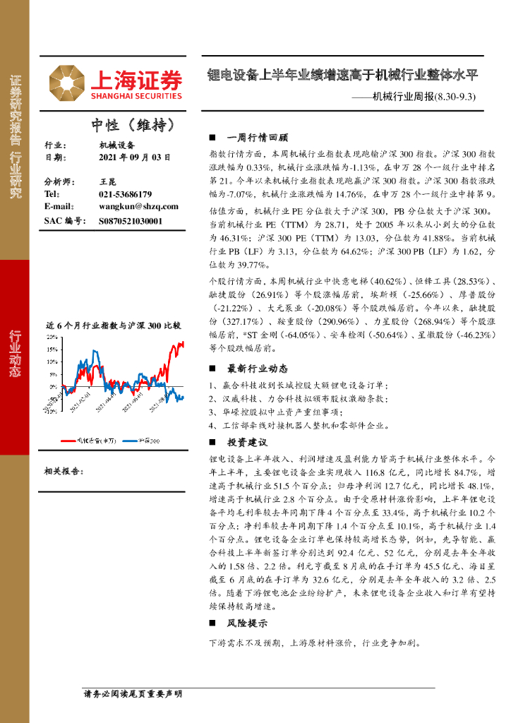 上海证券:机械行业周报:锂电设备上半年业绩增速高于机械行业整体水平.pdf