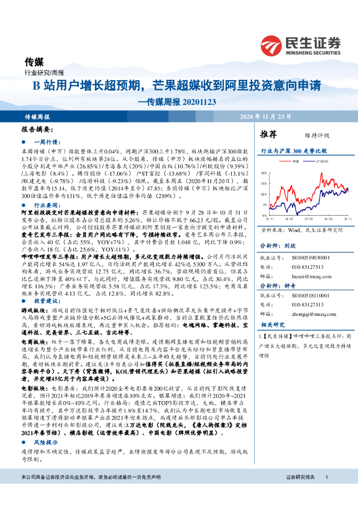 民生证券:传媒周报:B站用户增长超预期,芒果超媒收到阿里投资意向申请.pdf