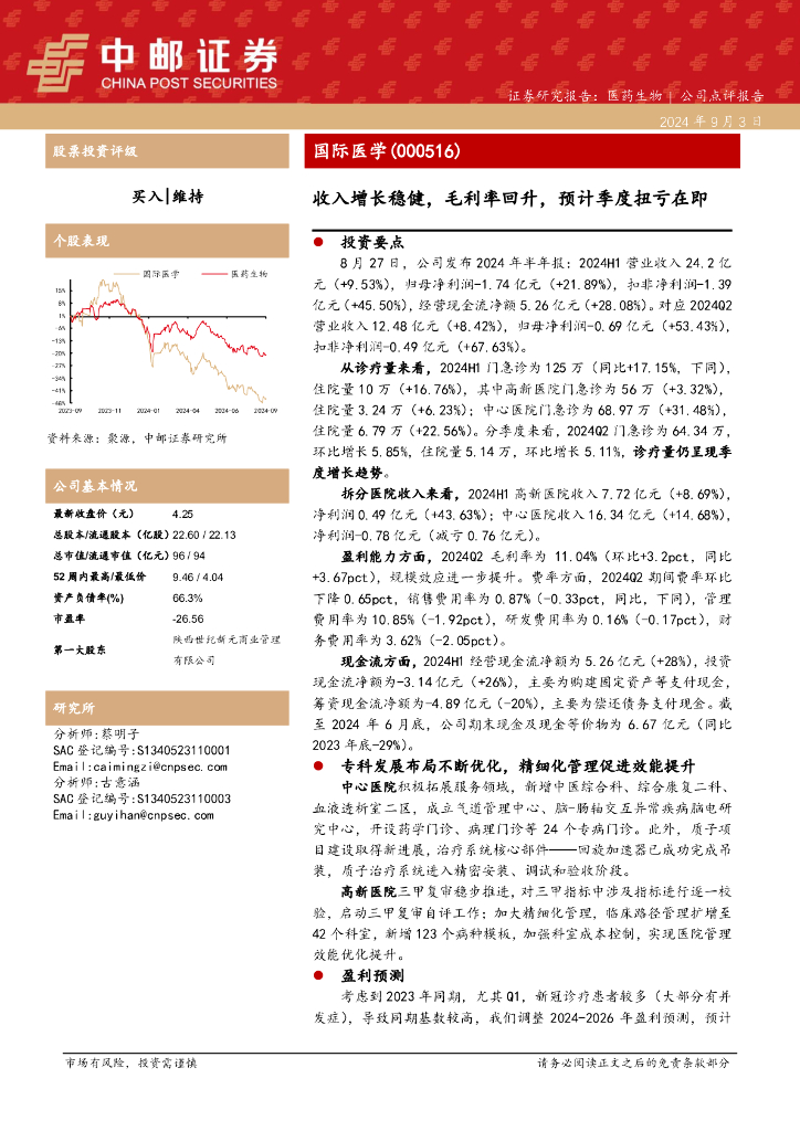 中邮证券:国际医学(000516)-收入增长稳健,毛利率回升,预计季度扭亏在即.pdf