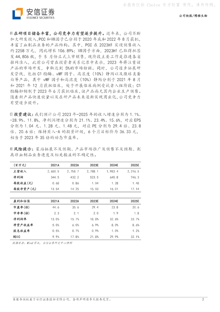 安信证券:博雅生物(300294)-2023H1血制品业务稳健增长,非血制品业务有望逐步剥离.pdf
