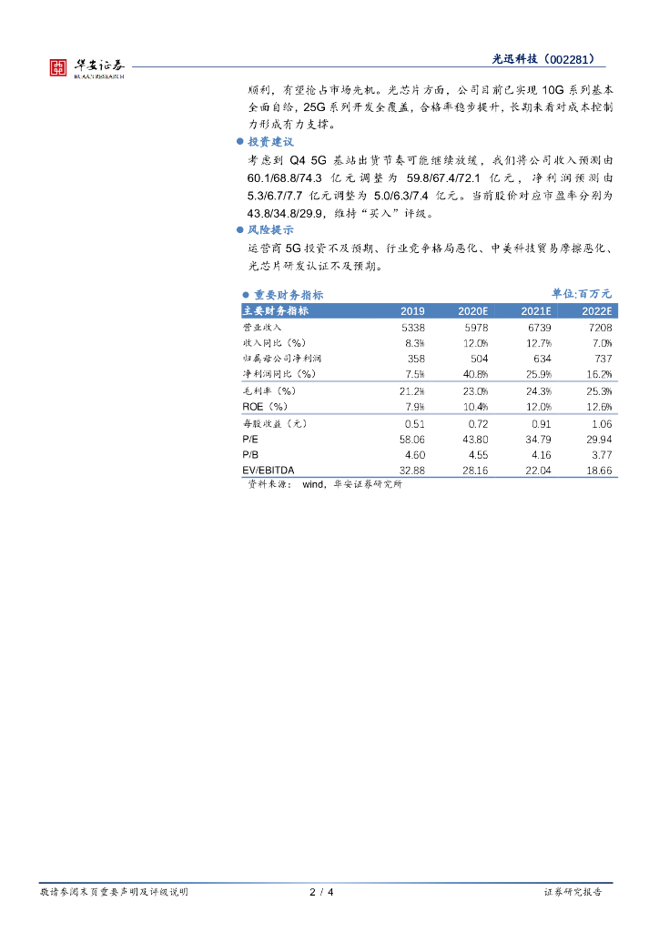 华安证券:光迅科技(002281)-多产品线抵御5G出货周期性,龙头地位不改.pdf