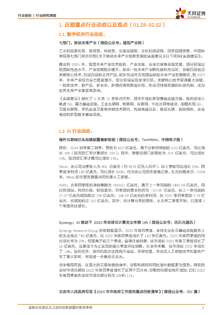 天风证券:通信行业研究周报:海外云业务快速发展,AI成为海外巨头重要投入方向.pdf