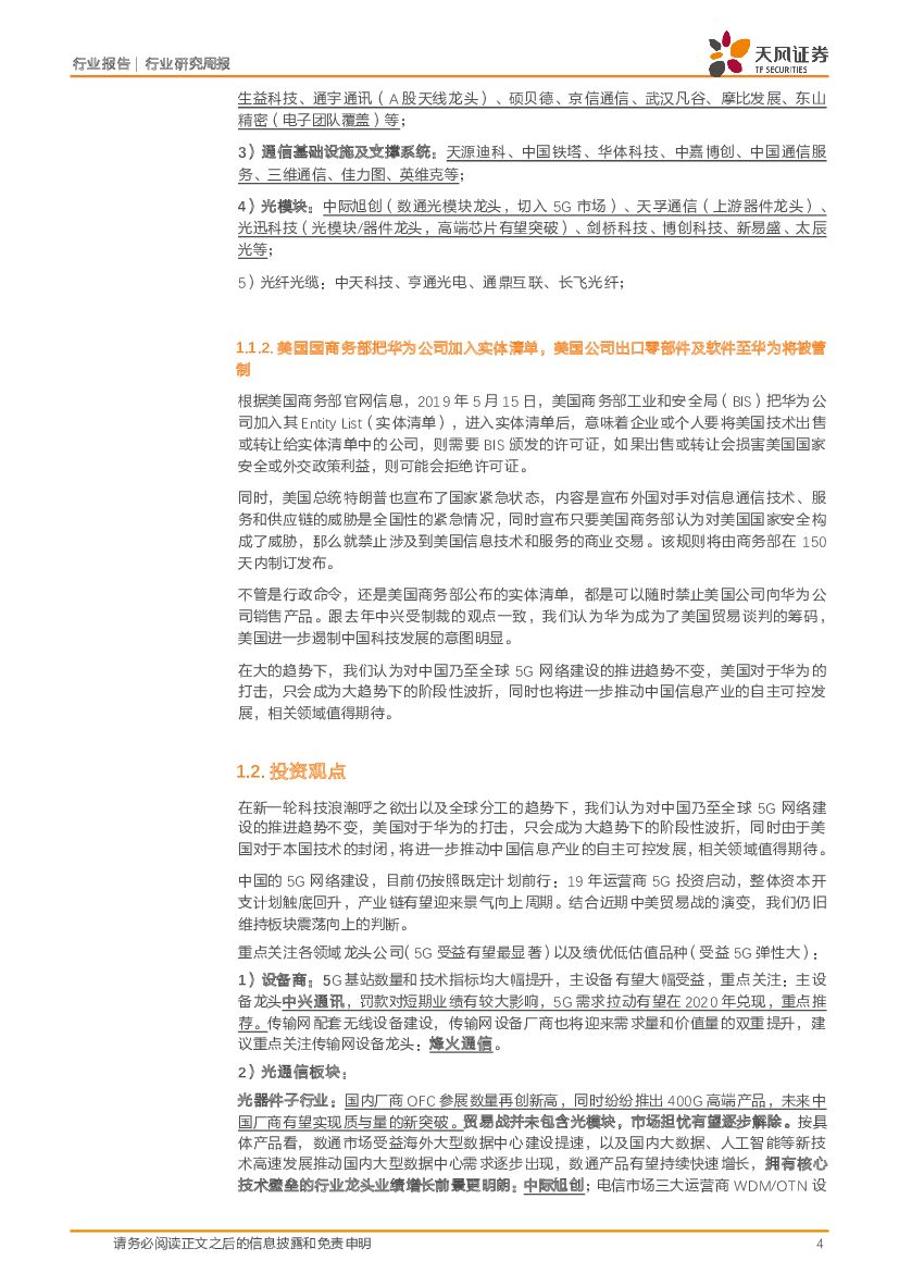 天风证券:通信行业研究周报:华为被美国加入产品管制的实体清单,不改5G长期成长趋势.pdf