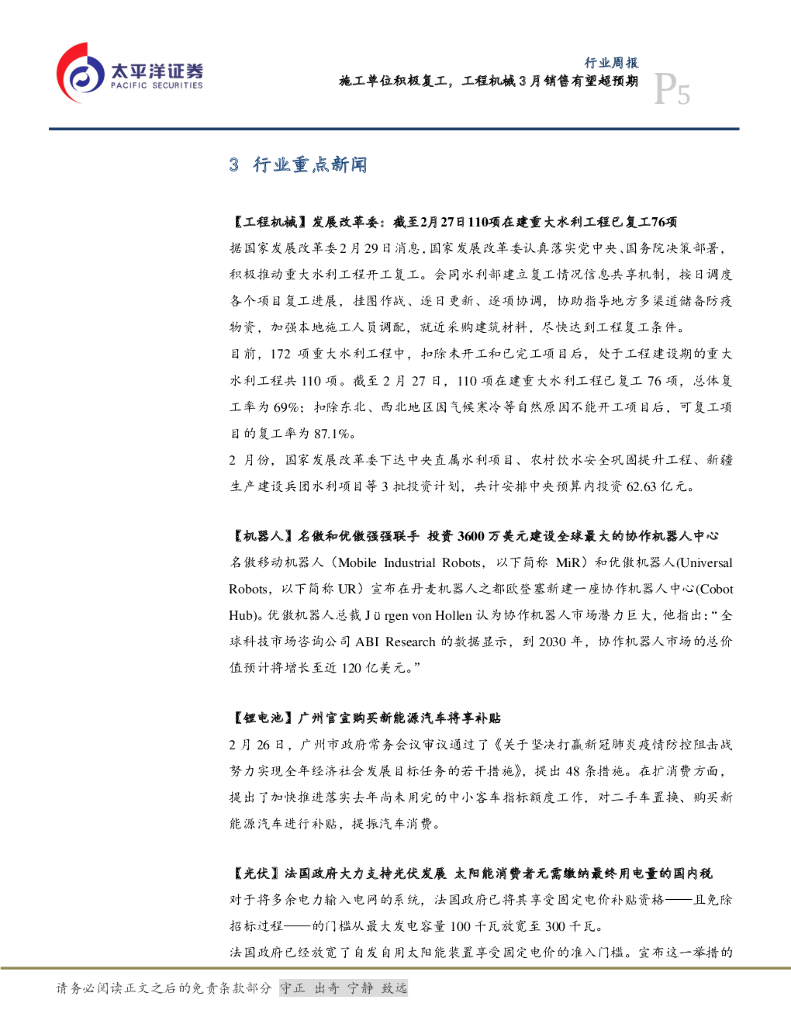 太平洋证券:机械行业周报:施工单位积极复工,工程机械3月销售有望超预期.pdf