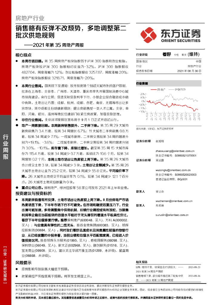 东方证券:东方证券-房地产行业2021年第35周地产周报:销售略有反弹不改颓势,多地调整第二批次供地规则-210830.pdf