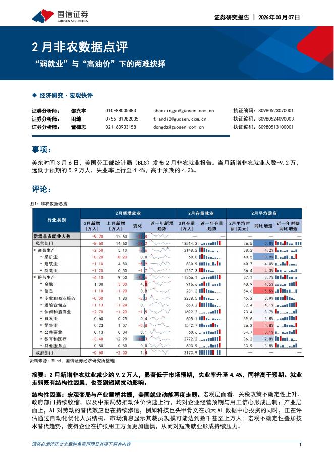 国信证券:2月非农数据点评:“弱就业”与“高油价”下的两难抉择-260308.pdf