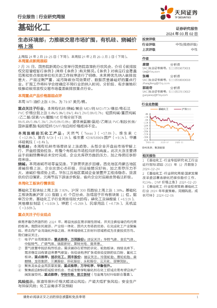 天风证券:基础化工行业生态环境部:力推碳交易市场扩围,有机硅、烧碱价格上涨.pdf