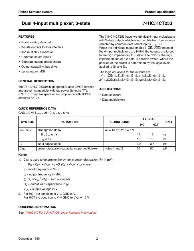 PHILIPS 74HC/HCT253 Dual 4-input multiplexer; 3-state 数据手册.pdf