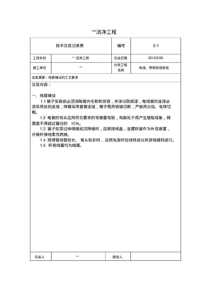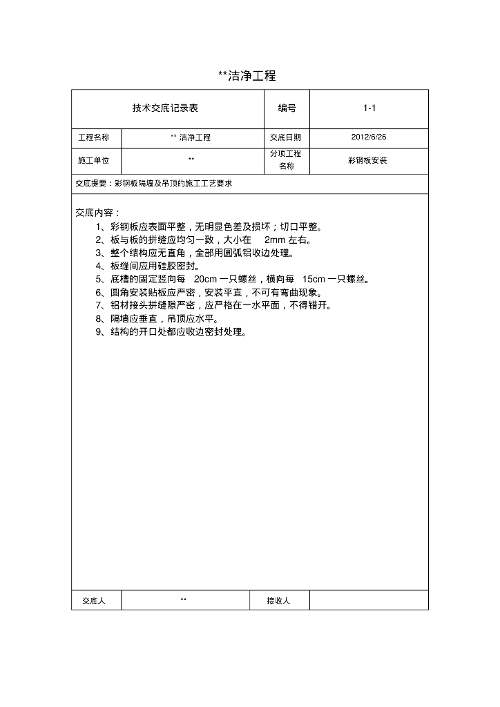 洁净工程交最新暖通技术交底记录表.pdf