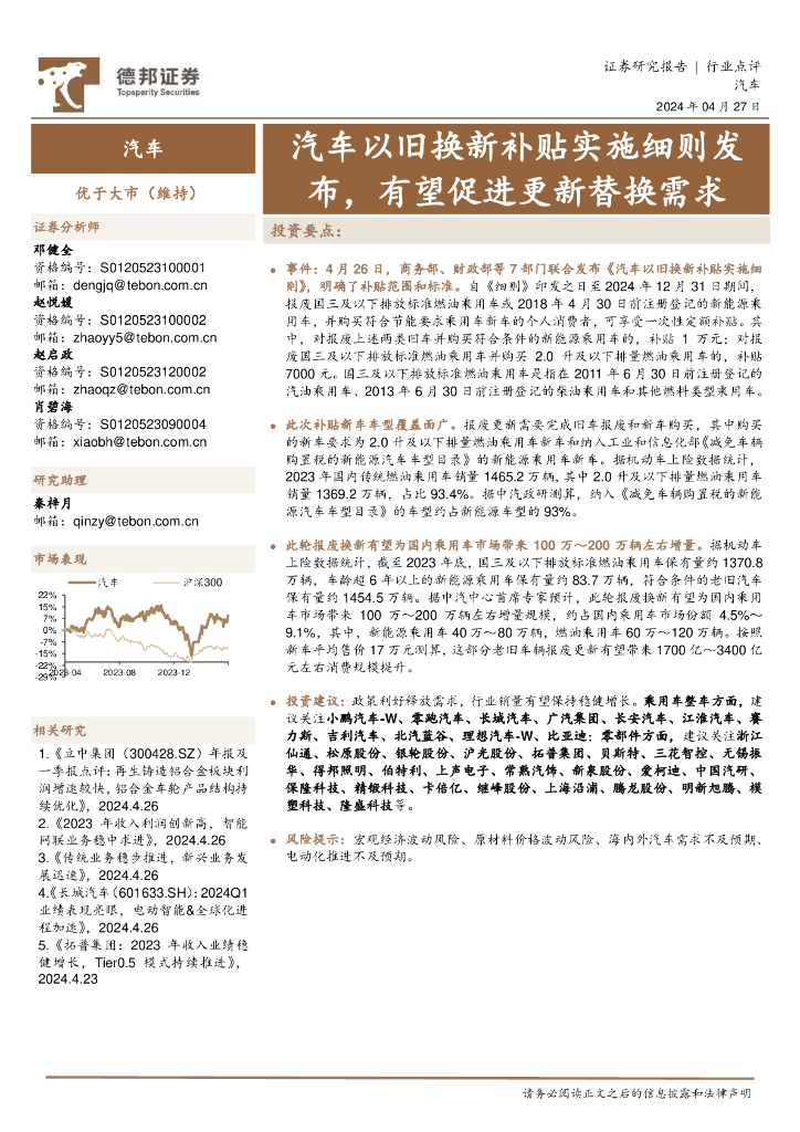 德邦证券:汽车行业点评:汽车以旧换新补贴实施细则发布,有望促进更新替换需求.pdf