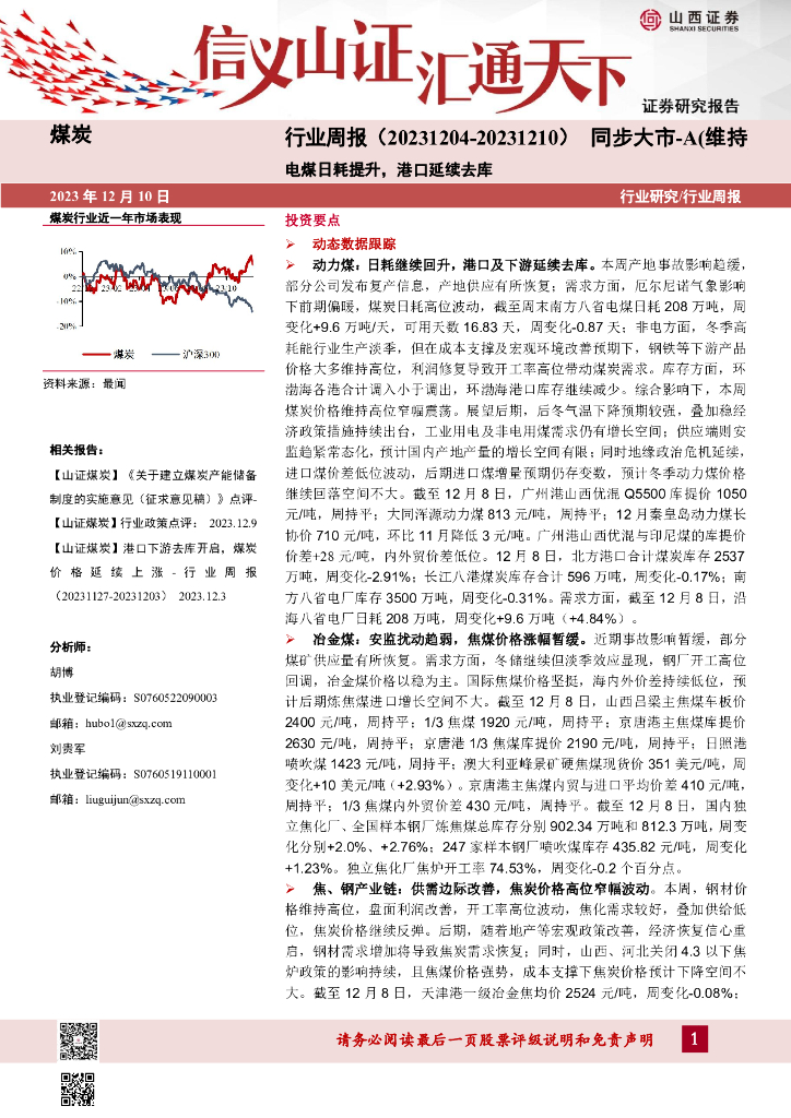 山西证券:煤炭行业周报:电煤日耗提升,港口延续去库.pdf
