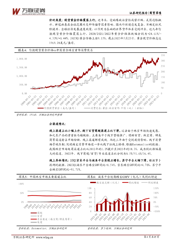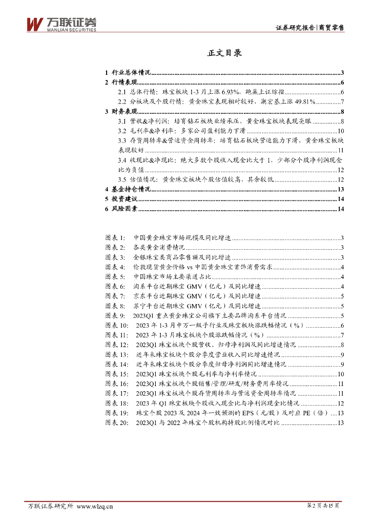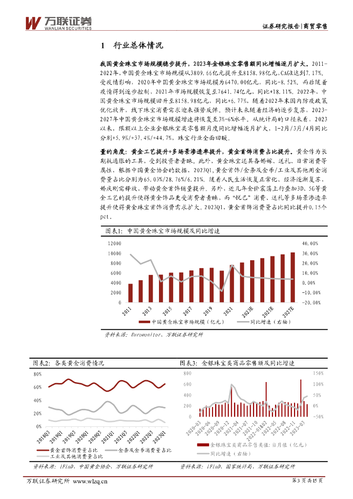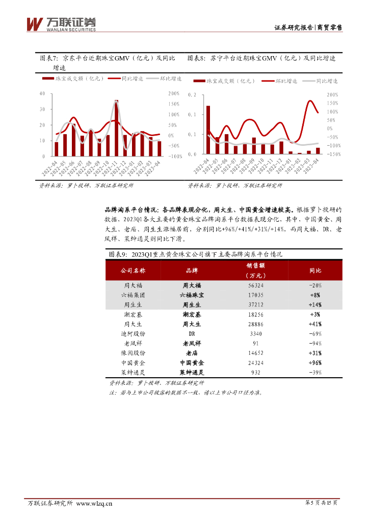 万联证券:珠宝行业2023年一季报综述:金银珠宝零售额同比增幅逐月扩大,部分公司23Q1业绩表现优异.pdf