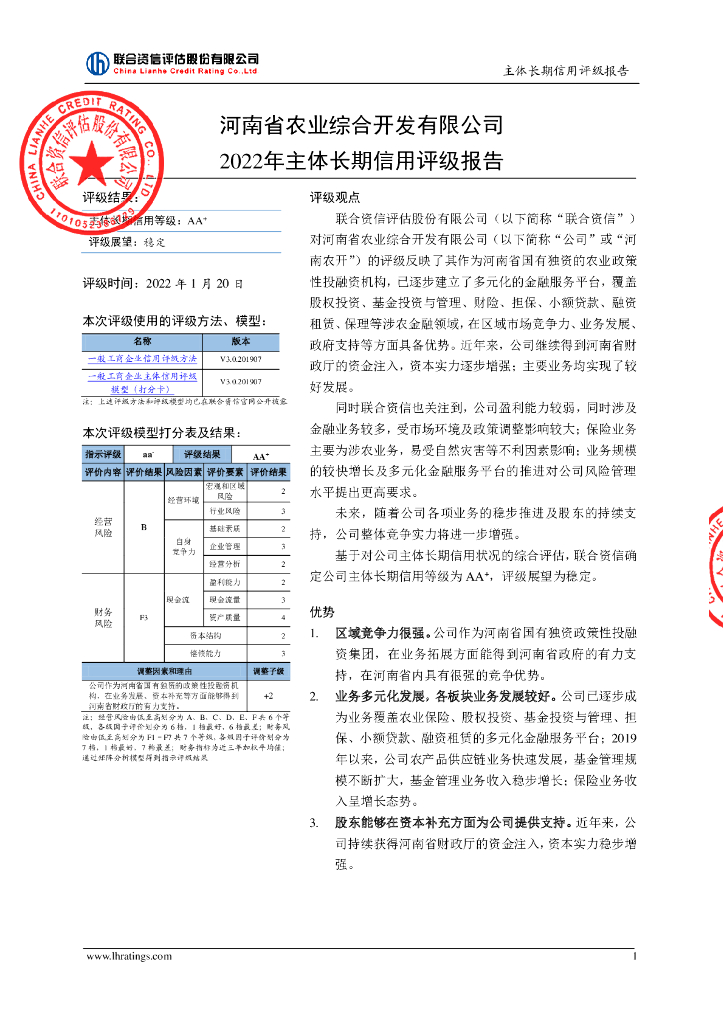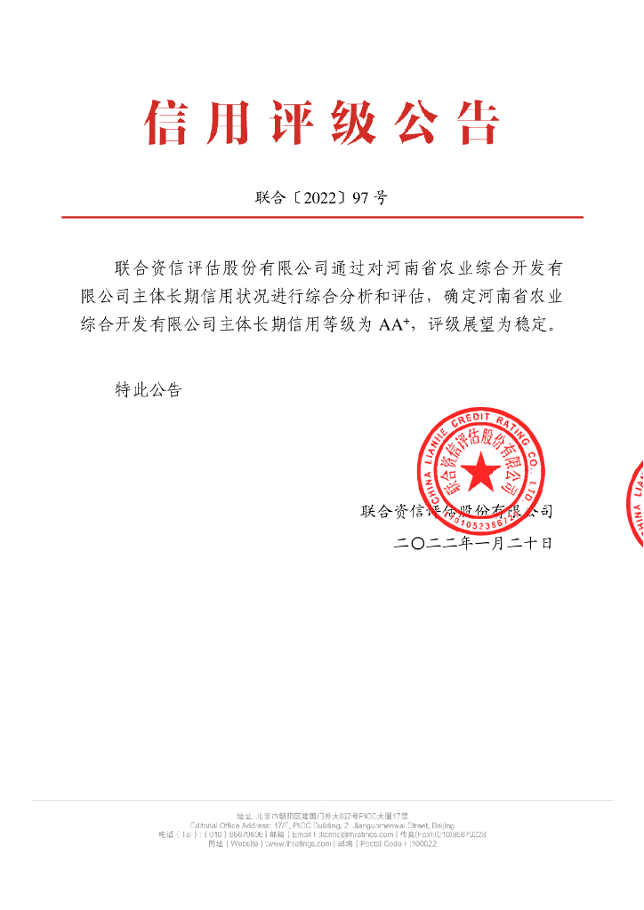 联合资信:河南省农业综合开发有限公司2022年主体长期信用评级报告.pdf