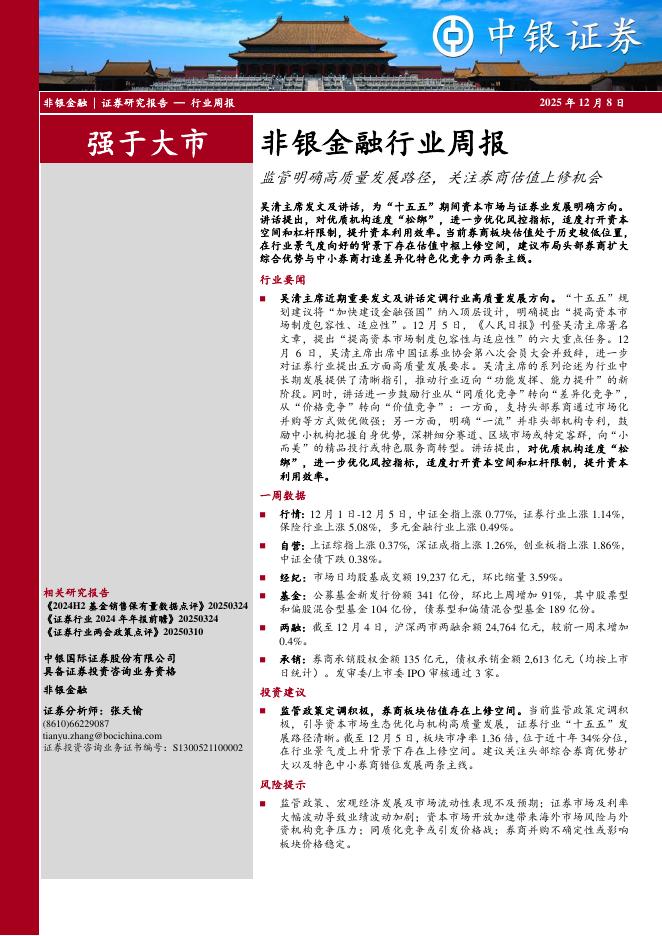 中银证券:非银金融行业周报:监管明确高质量发展路径,关注券商估值上修机会.pdf