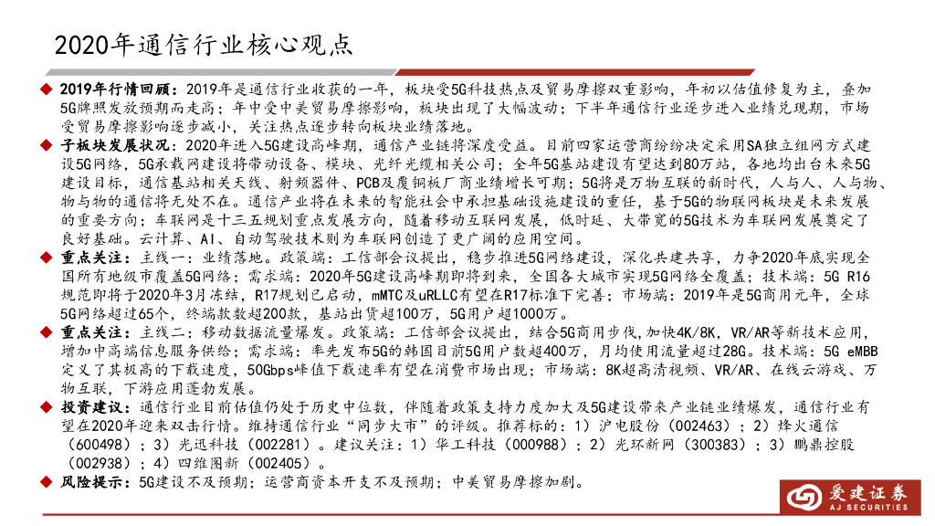 爱建证券:2020年通信行业投资策略:5G基建浪潮迭起,流量爆发推动产业升级.pdf