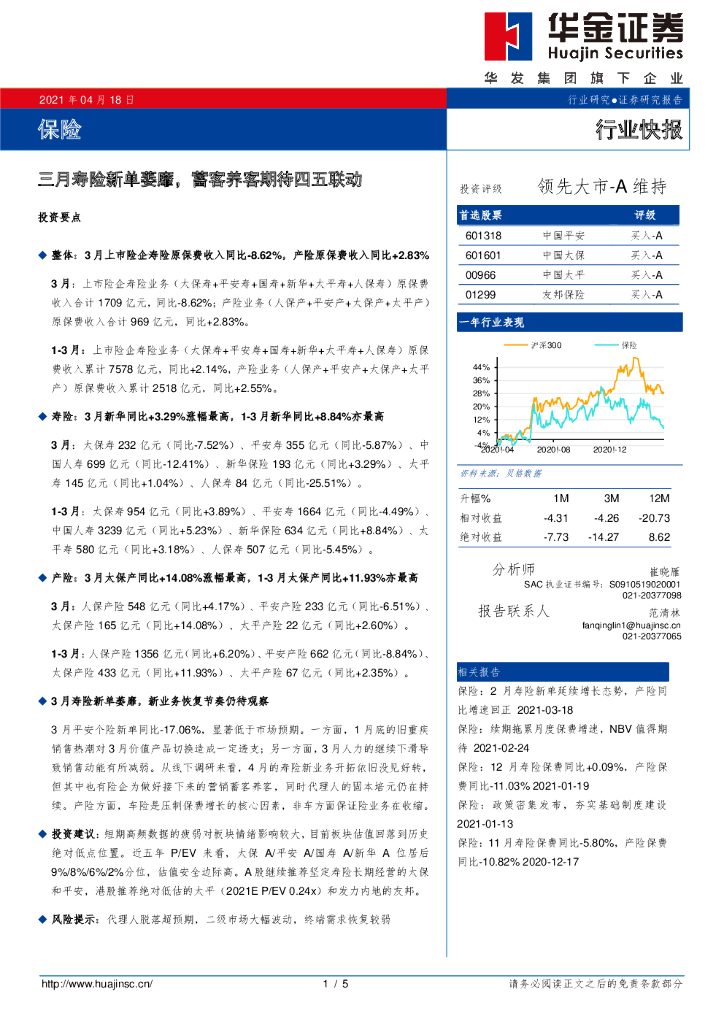 华金证券:保险:三月寿险新单萎靡,蓄客养客期待四五联动.pdf