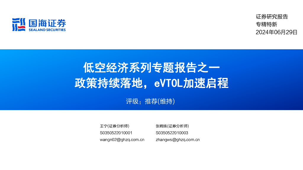 国海证券:低空经济系列专题报告之一:政策持续落地,eVTOL加速启程.pdf