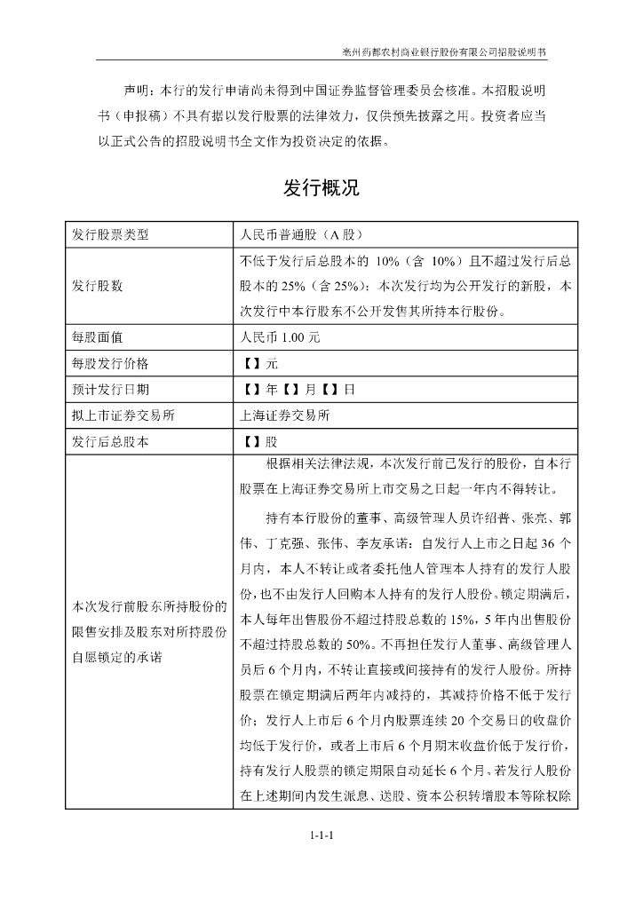 亳州药都农村商业银行股份有限公司上交所主板IPO上市招股说明书.pdf