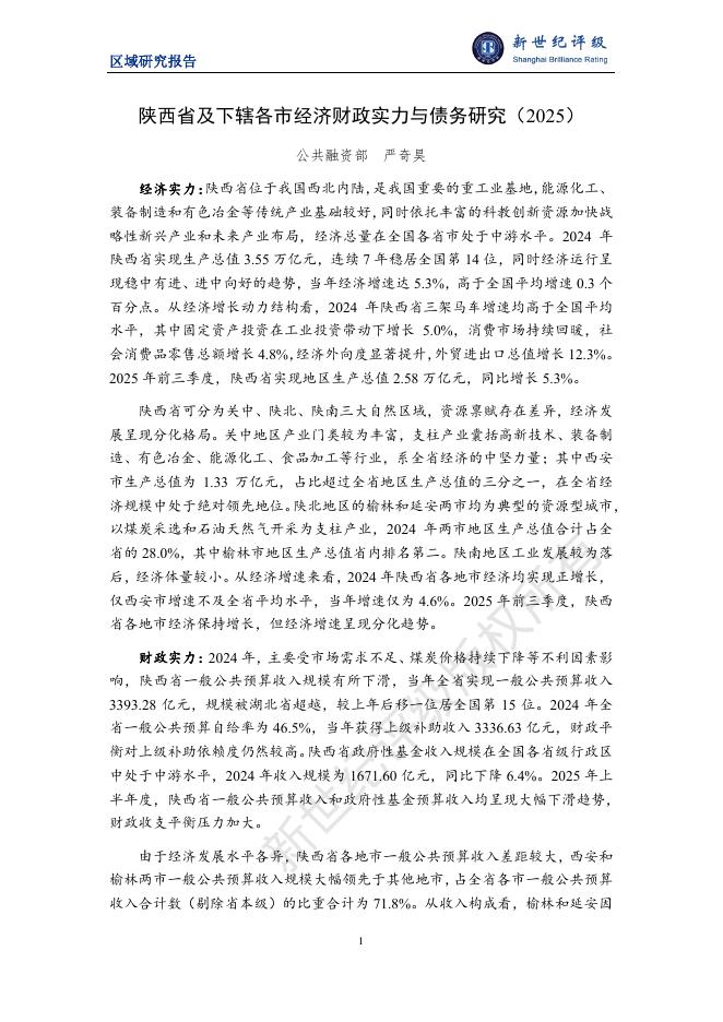 新世纪评级:陕西省及下辖各市经济财政实力与债务研究(2025).pdf