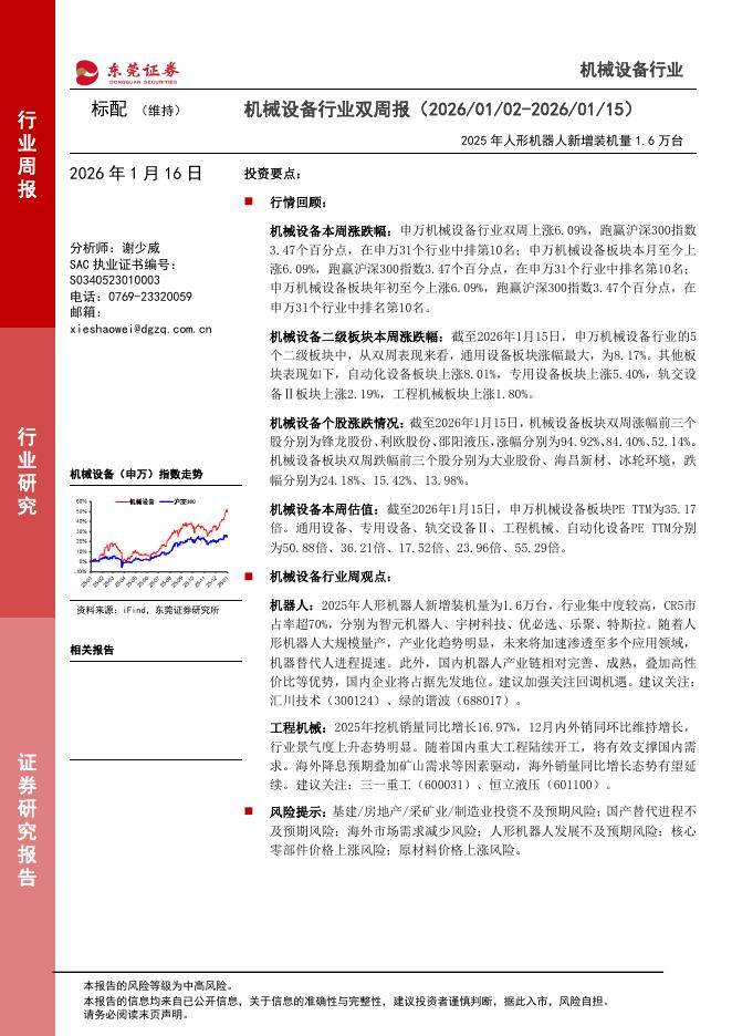 东莞证券:机械设备行业双周报:2025年人形机器人新增装机量1.6万台.pdf
