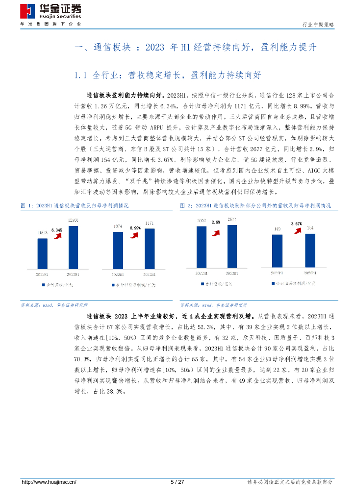 华金证券:2023H1通信行业综述:盈利持续向好,算力+数据要素+卫星高景气.pdf