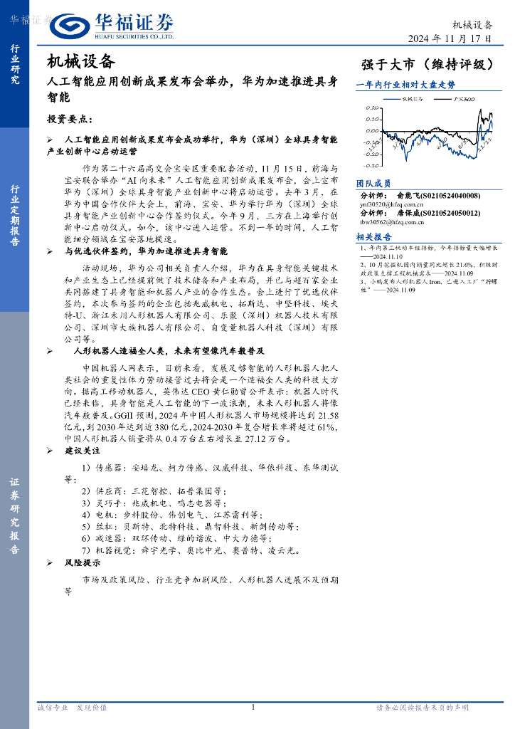 华福证券:人工智能应用创新成果发布会举办,华为加速推进具身智能.pdf