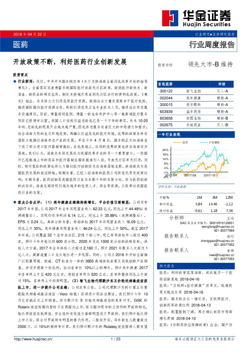 华金证券:医药行业周度报告:开放政策不断,利好医药行业创新发展.pdf