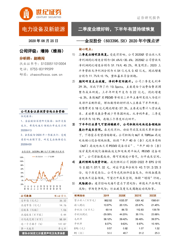 世纪证券:金辰股份(603396)-2020年中报点评:二季度业绩好转,下半年有望持续恢复.pdf