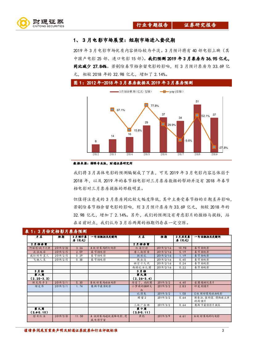 财通证券:传媒行业专题报告:3月票房预测专题报告,3月票房预计承压,院线数据整体不及预期.pdf