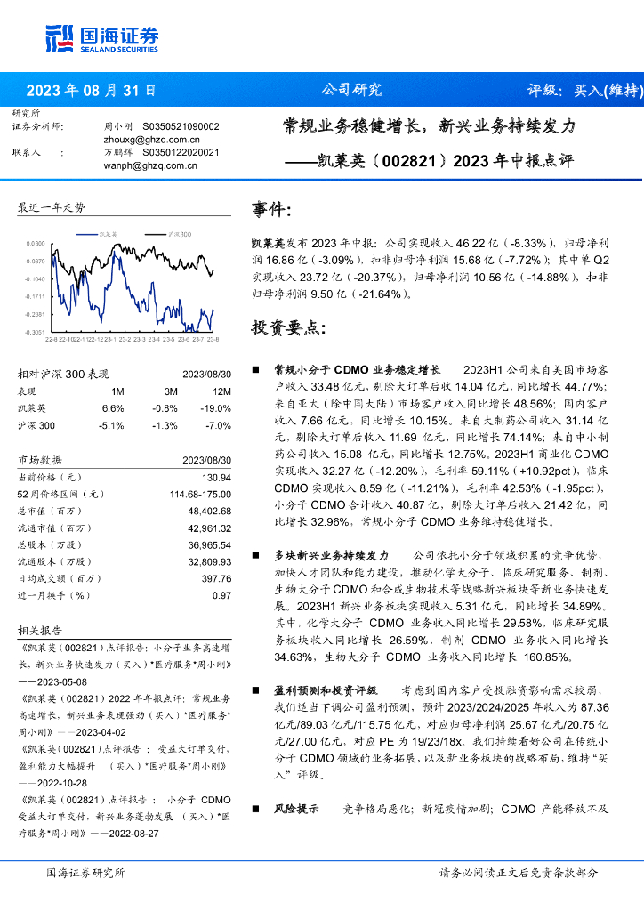 国海证券:凯莱英(002821)-2023年中报点评:常规业务稳健增长,新兴业务持续发力.pdf