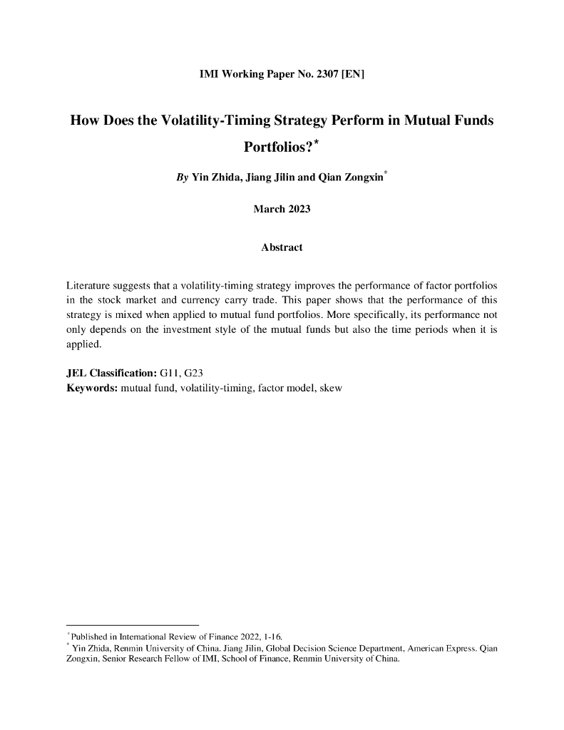 IMI Working Paper No.2307 How Does the Volatility-Timing Strategy Perform in Mutual Funds.pdf