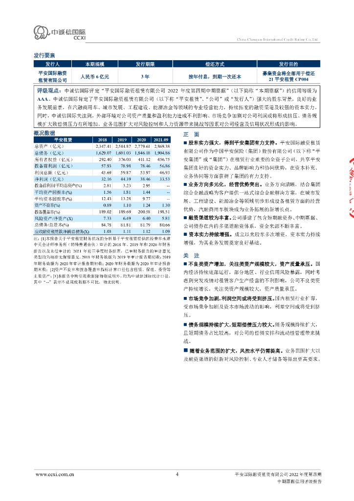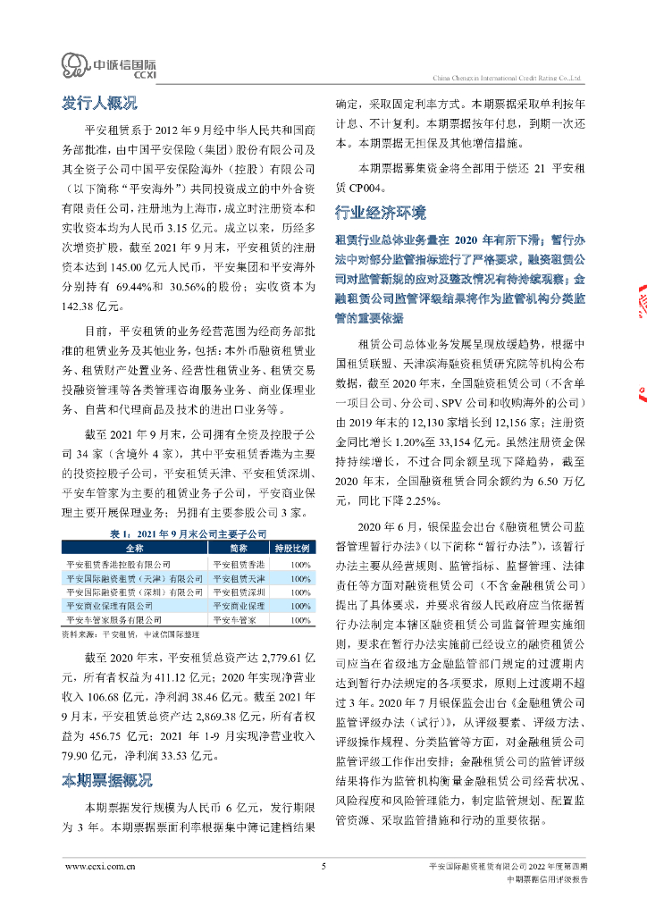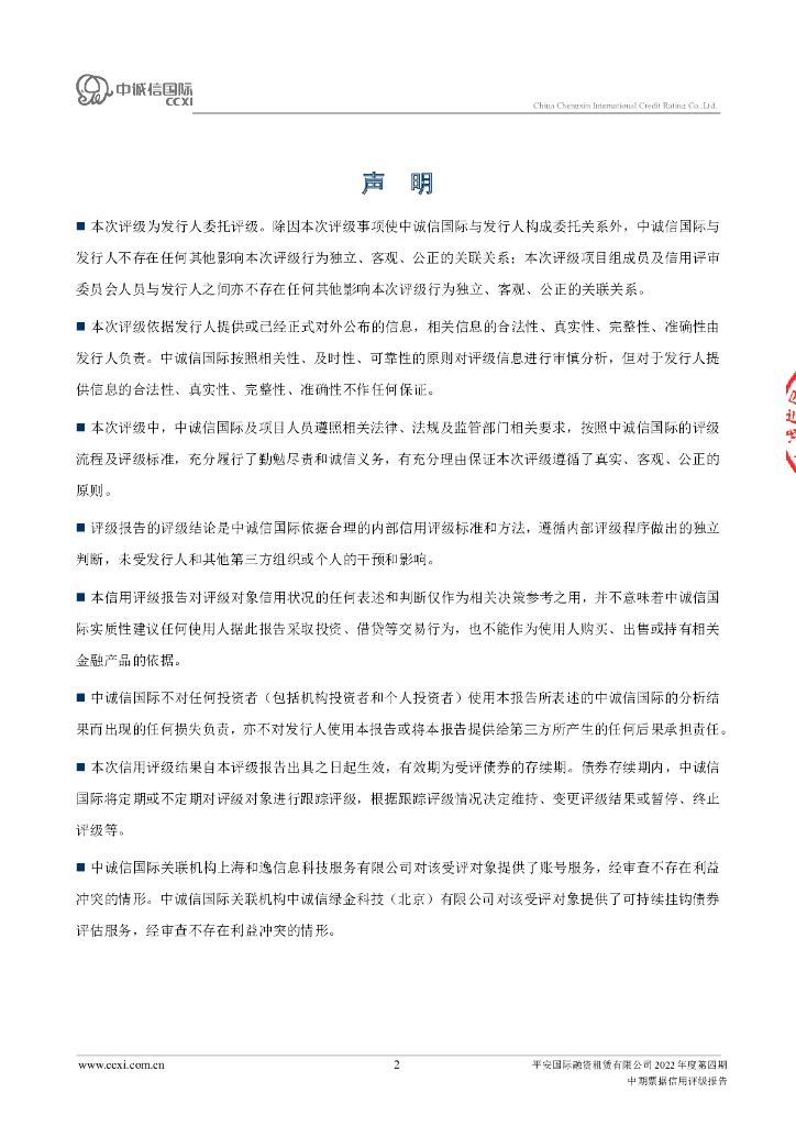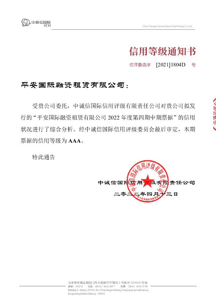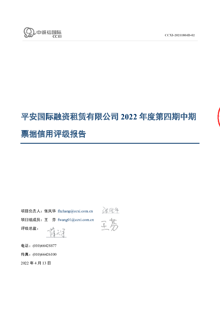 中诚信:平安国际融资租赁有限公司2022年度第四期中期票据信用评级报告.pdf