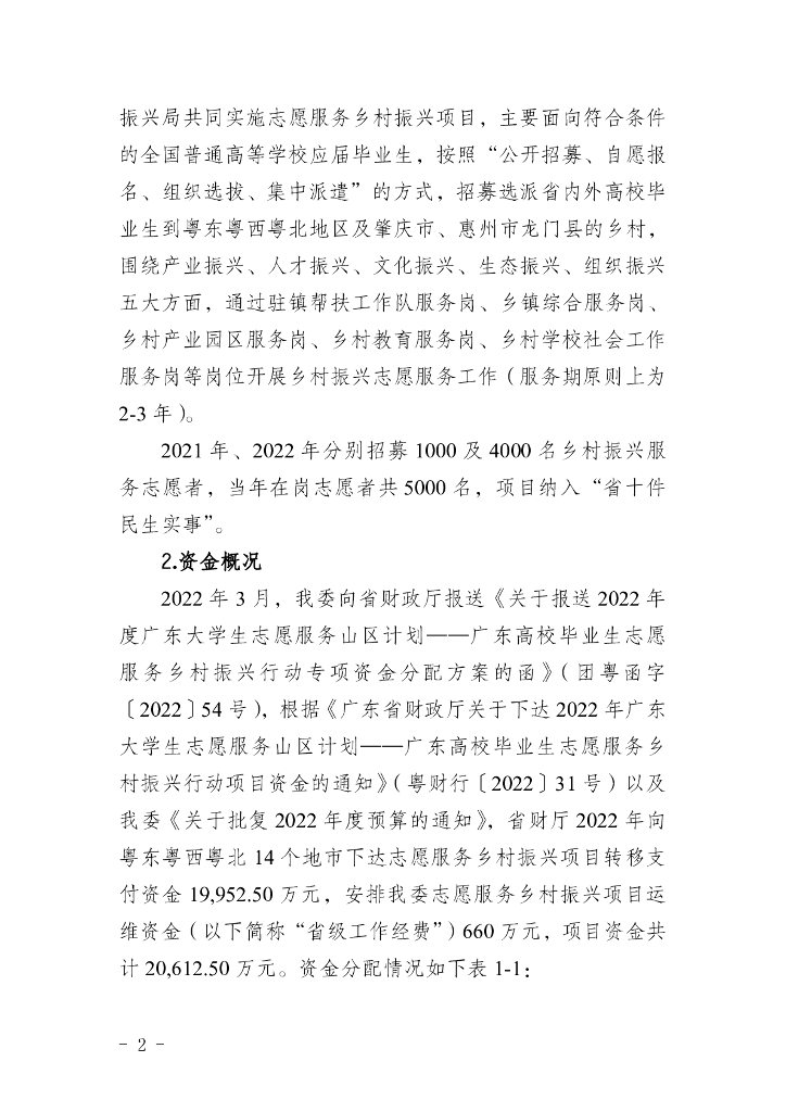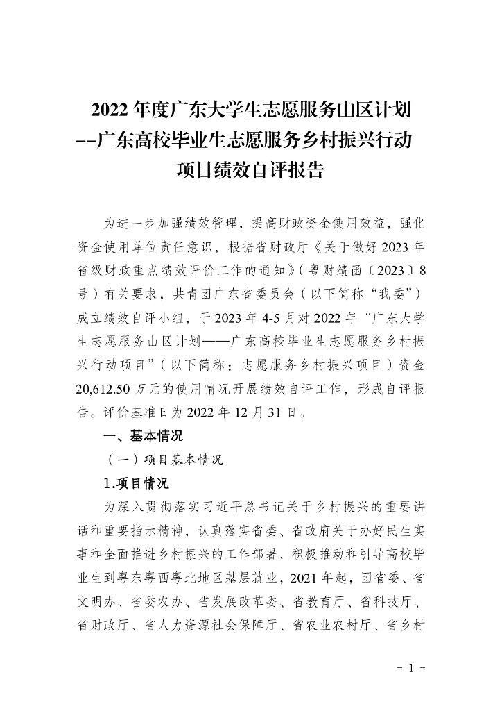2022年度广东大学生服务山区计划广东高校毕业生志愿服务乡村振兴行动项目绩效自评报告.pdf