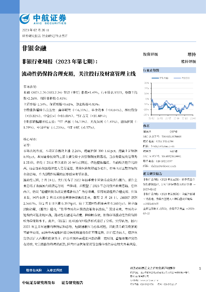 中航证券:非银行业周报(第七期):流动性仍保持合理充裕,关注投行及财富管理主线.pdf