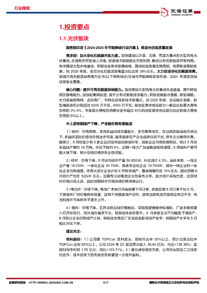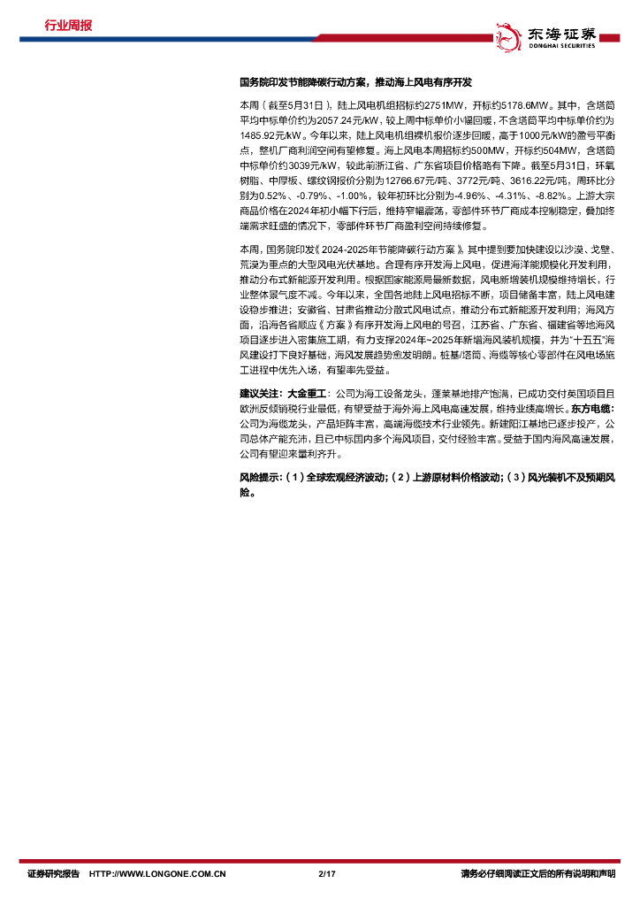 东海证券:新能源电力行业周报:国务院印发《2024-2025年节能降碳行动方案》,推动光伏、海风有序发展.pdf