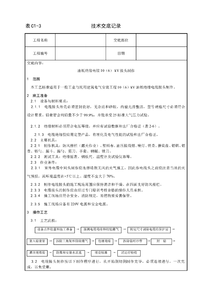 油纸绝缘电缆10(6)kV接头制作工艺.doc